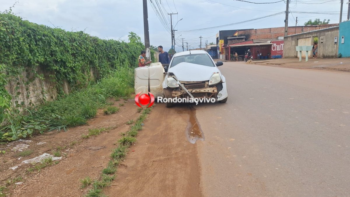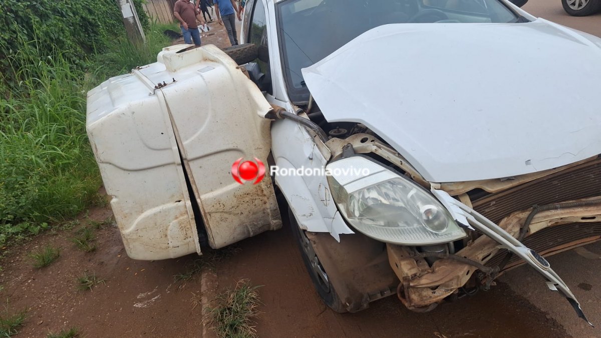 Um carro modelo Ford Ka que seguia em direção a Avenida Guaporé foi atingido pela "carretinha" desgovernada, que quase entrou pelo parabrisa do veículo, o que poderia acertar o motorista em cheio.