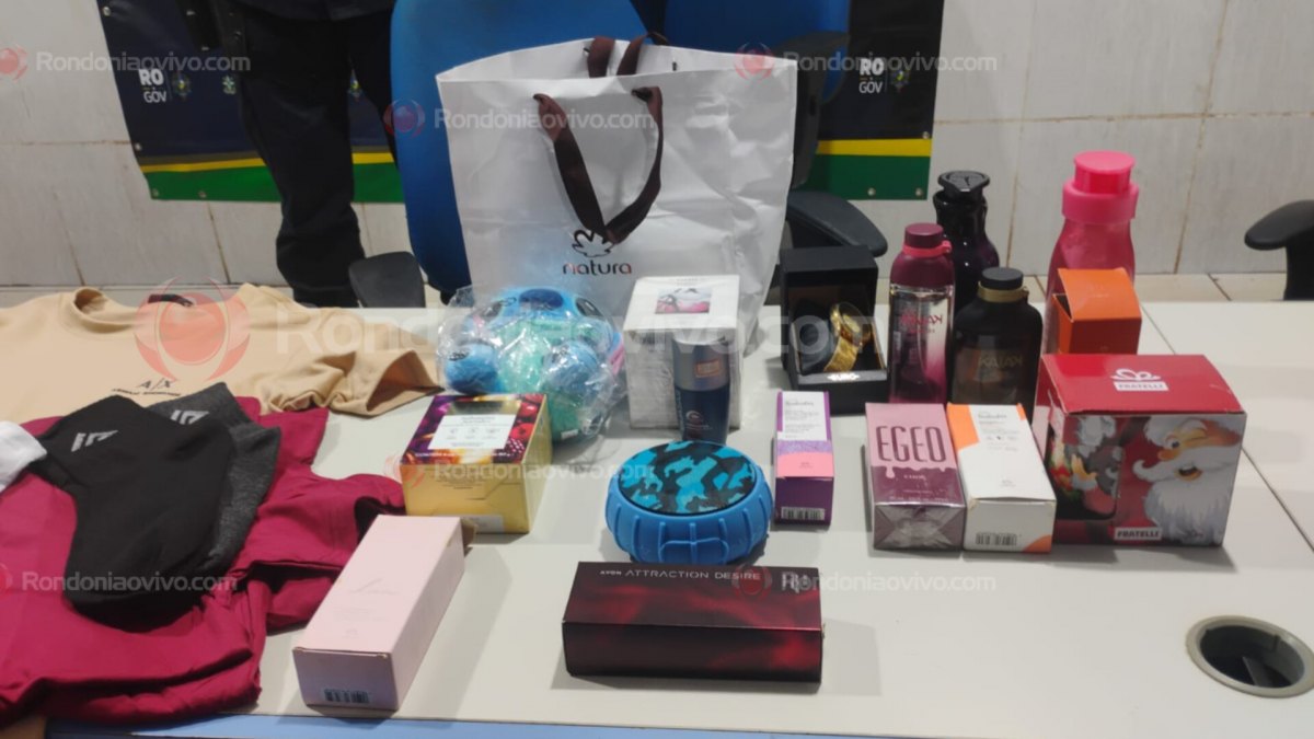 O acusado foi preso com a bermuda e a camisa furtada e outros objetos novos de procedência duvidosa.