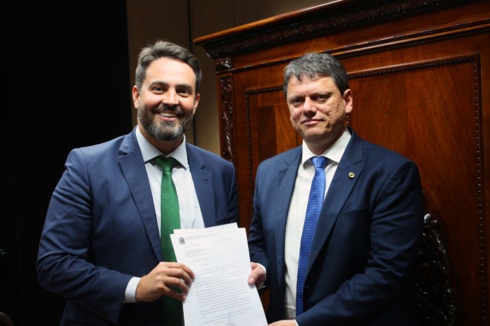 Léo Moraes em reunião com o ministro da infraestrutura Tarcísio Gomes.