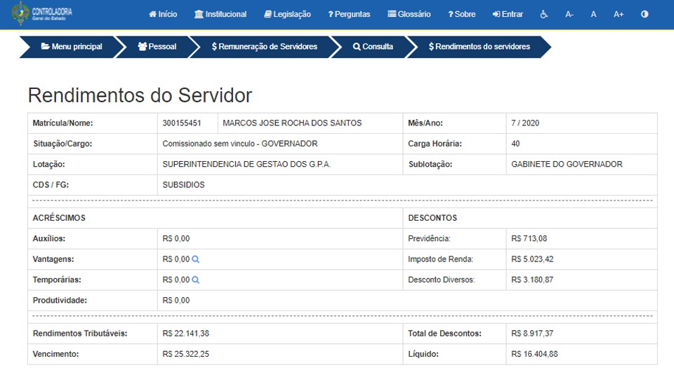 Mesmo considerando os valores líquidos, após todos os descontos, o casal ainda mantém uma renda de mais de R$ 40 mil em salários somados, o que representaria mais de R$ 500 mil anuais para o núcleo familiar dos Rocha.