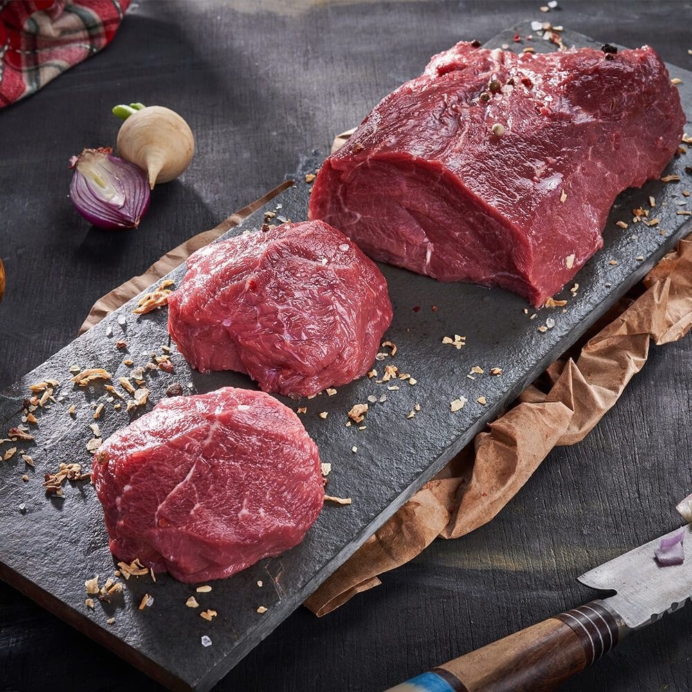 Já a alcatra é fornecida em duas formas: inteira e moída, totalizando 50 quilos consumidos por mês.