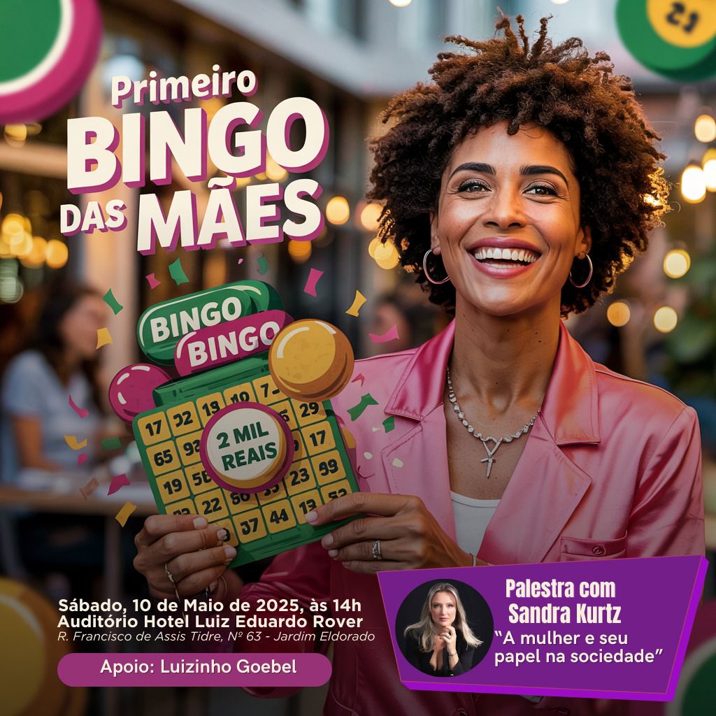 Com o apoio do deputado estadual Luizinho Goebel (PODEMOS), acontece neste sábado, 10 de maio de 2025, a primeira edição do Bingo do Dia das Mães em Vilhena. O evento, totalmente gratuito, foi preparado com carinho para homenagear aquelas que dedicam amor, cuidado e força à família e à sociedade: as mães.