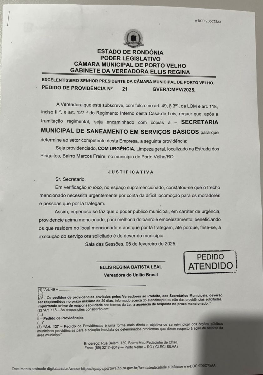 Ao parabenizar a Semusb pelo trabalho, a vereadora ressaltou a conclusão de vários serviços à comunidade feitos por ela à secretaria em vários pontos da cidade. Ellis também destacou a parceria fundamental da comunidade com o seu trabalho parlamentar e na construção de um mandato mais participativo.