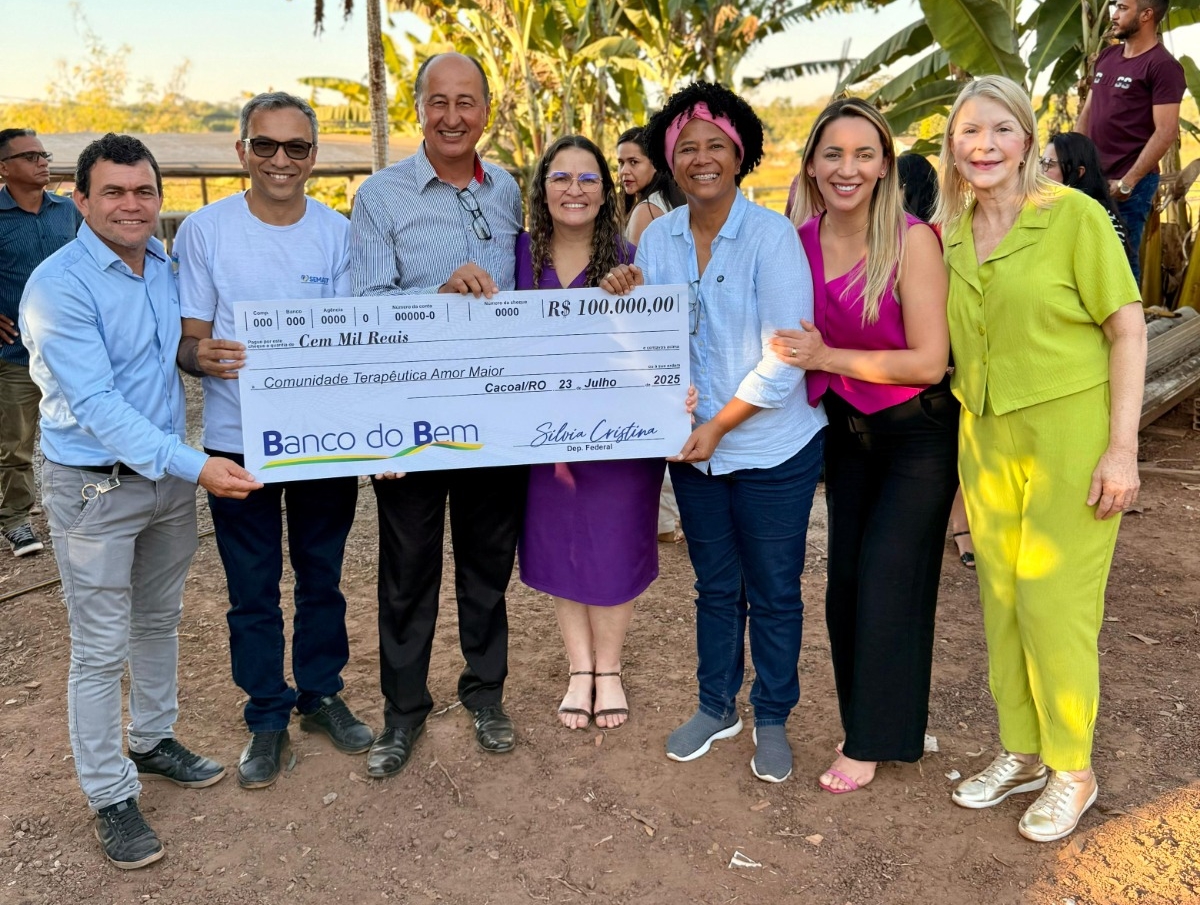 A deputada federal Sílvia Cristina assegurou R$ 100 mil para a Comunidade Terapêutica Amor Maior, que funciona na linha 208, em Cacoal, acolhendo pessoas dependentes químicas, sob a condução do pastor Erival.