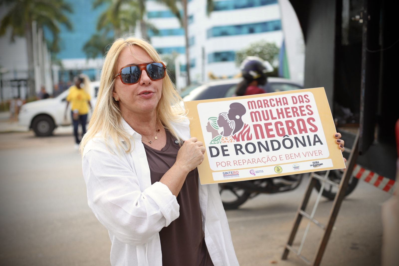 'Estamos em marcha por essa reparação, por tudo que vem acontecendo em Rondônia, o estado mais racista do Brasil. Nós estamos aqui pela vida, pois a cada 23 minutos um/a jovem negro morre. Lutamos para que a juventude continue viva. Precisamos dialogar com a Segurança Pública, com nossos governantes e com aqueles que ocupam espaços de poder', destacou.