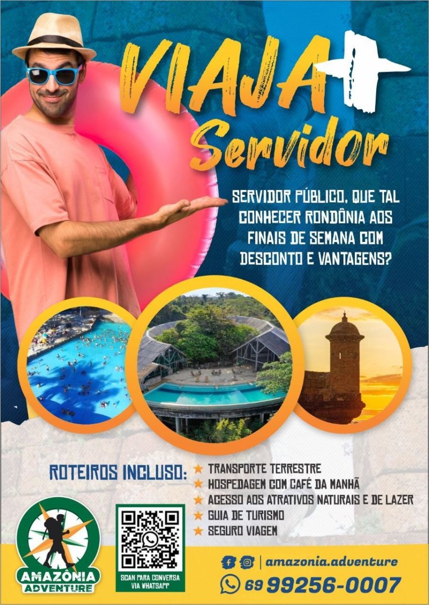 Uma boa pedida para se celebrar o Dia do Servidor Público, no dia 28 de outubro, é conhecer um pouco de Rondônia. Para isso, a Amazônia Adventure está com uma excursão para o Hotel Graúna e Vale das Cachoeiras. Saída no dia 28 e retorno no dia 29. Mais informações pelo telefone 99256-0007. Rondônia tem muito a te mostrar!