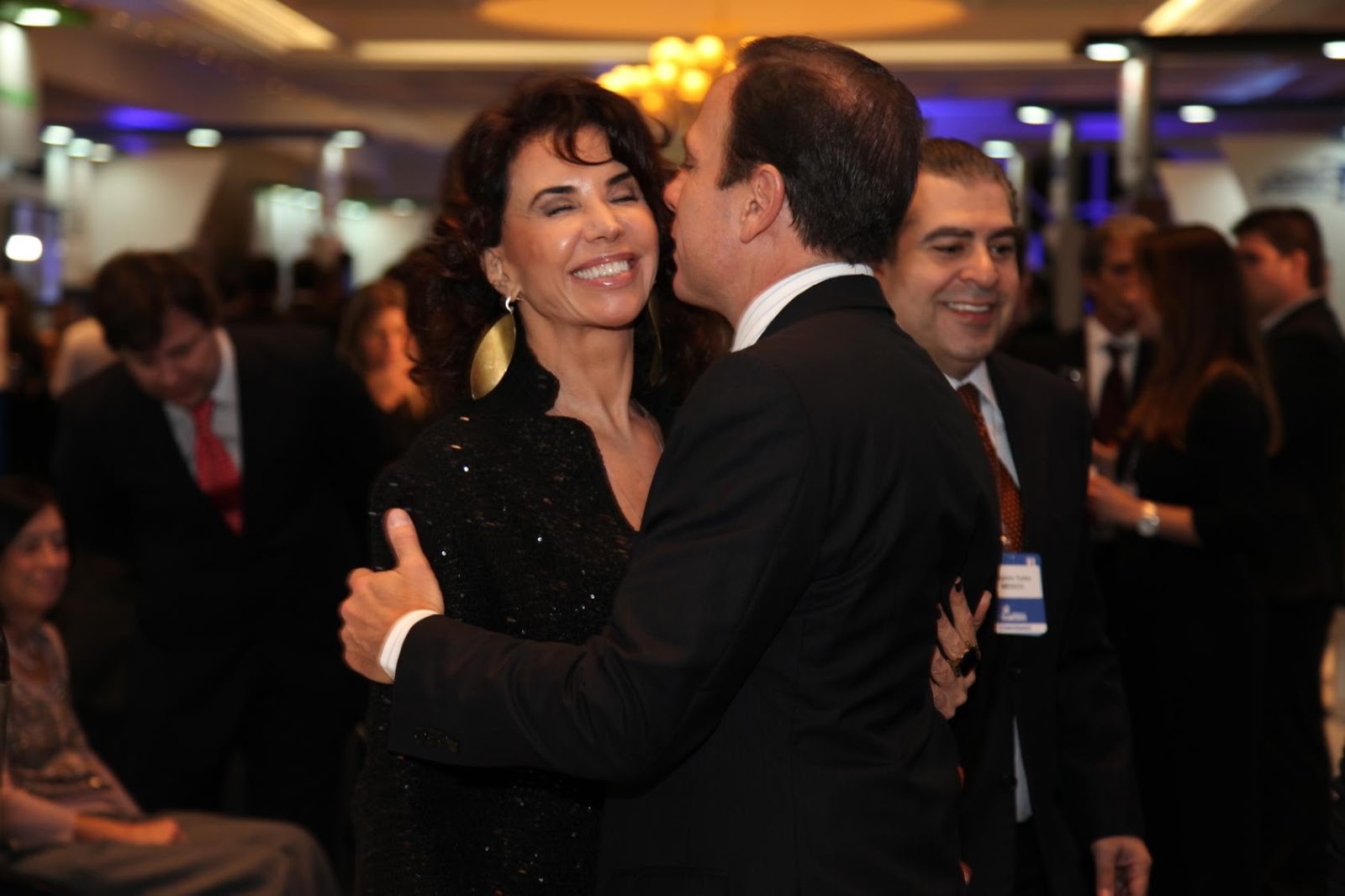 Claudia Alencar, em evento social, recebendo cumprimentos do prefeito João Dória