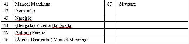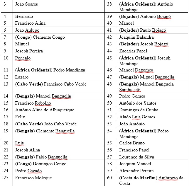 Obs.: Todos esses trabalhadores foram despedidos no dia 28 de outubro de 1776, pertencentes ao senhor Salvador José de Ignácio.