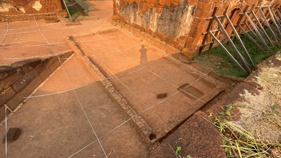 O que chamou atenção, foram as estruturas, em ambos os lados da escavação. Após uma sondagem, um retângulo medindo aproximadamente 11 X 7 de comprimento surgiu durante a escavação. Ambas, restam apenas o alicerce feito com rochas lateríticas, alinhadas e bem posicionadas. O que impressiona é que tal estrutura estava encoberta por entulhos diversos (cacos de cerâmicas, pedaços de tijolos, restos de telhas, misturados com barro), ficando abaixo de 40 centímetros.