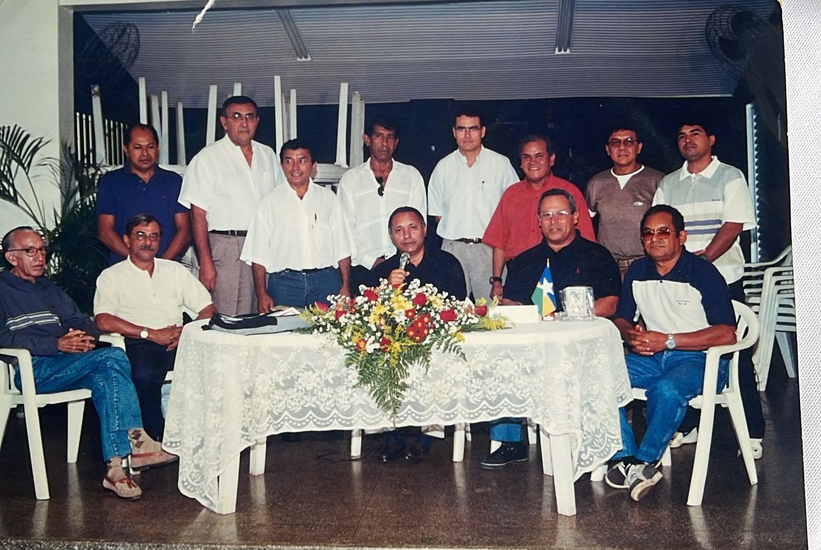 Na coluna anterior, foto da posse da diretoria da Arler, está o advogado Elenir Ávalo, de pé, o primeiro da esquerda.