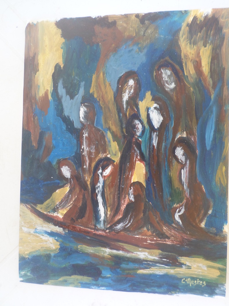 CHRISTIANE MESTAS - A vrai dire, J’utilise deux techniques : la peinture à l’huile sur toile qui donne une expression soutenue de type expressionniste et le monotype à l’huile sur papier plus léger qui s’apparente au type symboliste, mais dans ces deux manières je tente de créer un imaginaire inspiré par la Poésie, à travers des personnages inconnus ou croisés dans une autre vie… pour donner à rêver ou à méditer. La peinture étant le fruit d’une émotion suscite une expression dans laquelle il est bon d’inscrire une touche de spiritualité