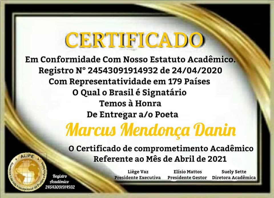Pela sua inteligência e pela sua sensibilidade, é contemplado constantemente com inúmeros diplomas literários, em todos os quadrantes do país e exterior. Bem que merecia uma vaga numa das Academias de Letras de Rondônia.