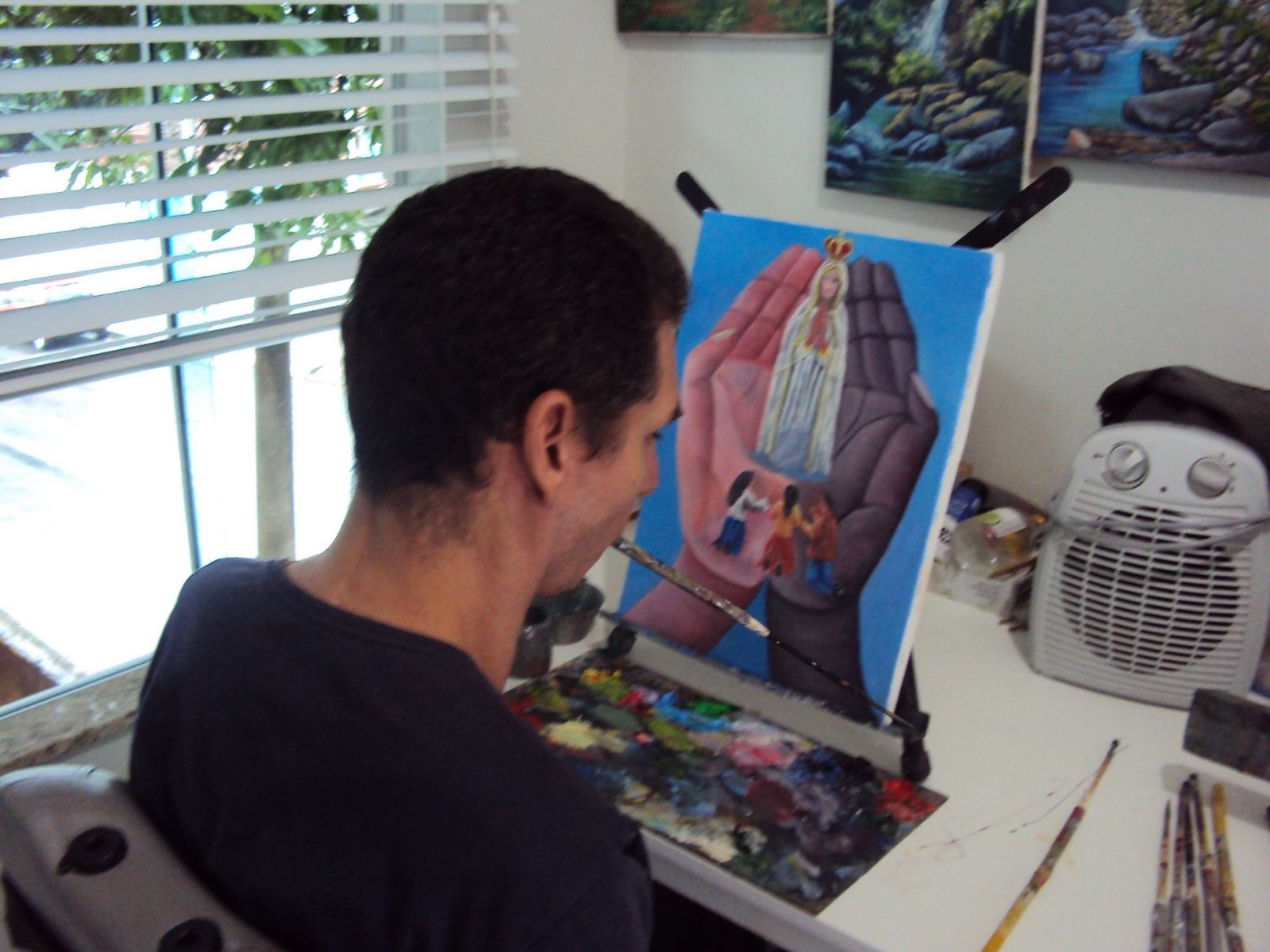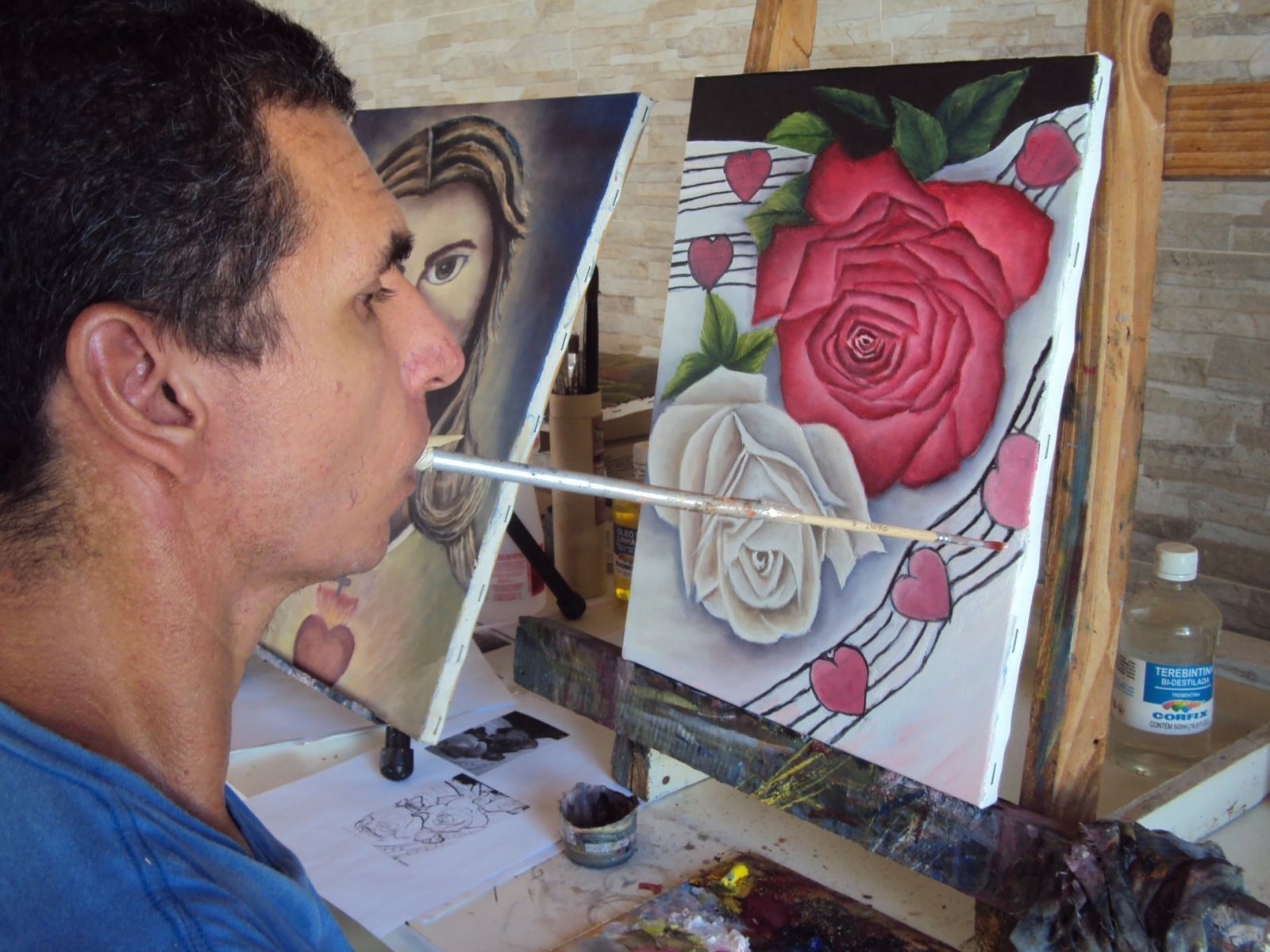 LEANDRO CAMARGO DE OLIVEIRA – Sim, fiz cursos, work shop, assisto aulas de vários professores de pintura atraves da internet, e tento adaptar o jeito que pintam para o meu, já que maioria dos professores pintam com a mão, e como pinto segurando pincel com a boca tenho que descobrir formas de reproduzir o que fazem segurando pincel com a mão fazer com a boca. Aos poucos estou descobrindo um estilo próprio que junte tudo que apreendi e estou apreendendo.