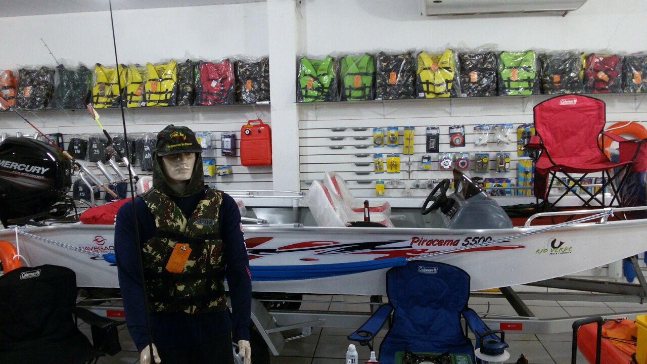 A loja trabalha com grandes marcas para melhor lhe atender: Coleman , Náutika , Mercury, Reboques Vivan e Bonni, CBC, Marine Sport e muitas outras. Com uma linha completa de materiais de Pesca Esportiva, Camping, Barcos e Lanchas de alumínio com fabricação própria, representamos toda a linha dos motores Mercury e Lanchas Fs.
