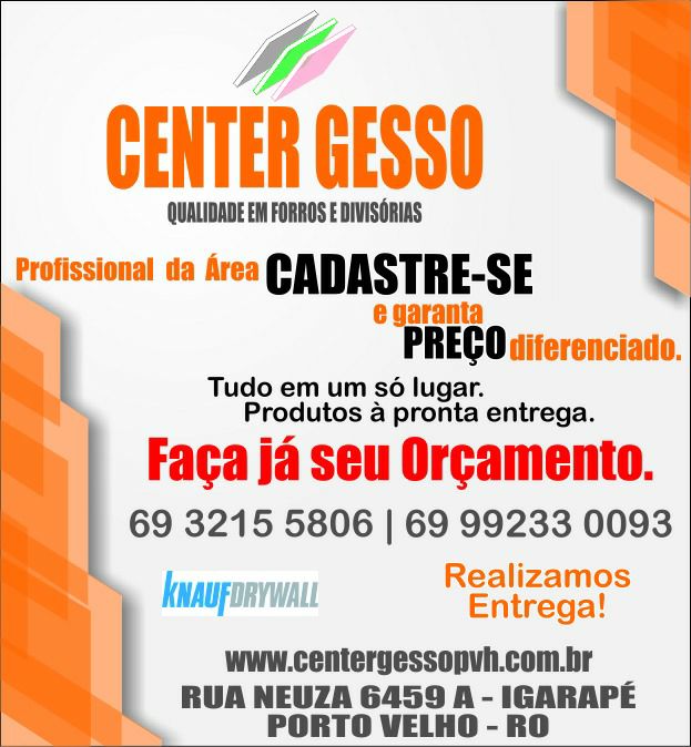 CONTATOS: www.centergessopvh.com.br centergessopvh@hotmail.com