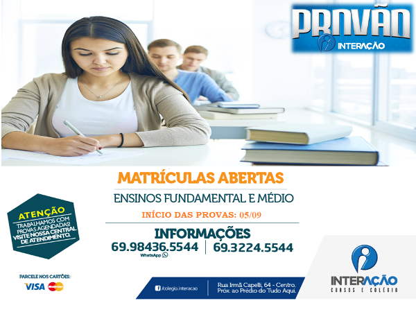 Atenção pessoal, mude de vida agora! O grande dia está chegando, aproveite faça revisão das matérias dos conteúdos da "Prova", você que ainda sonha em concluir seus estudos, não perca tempo. Venha iniciar ou Concluir conosco no PROVÃO DO INTERAÇÃO.