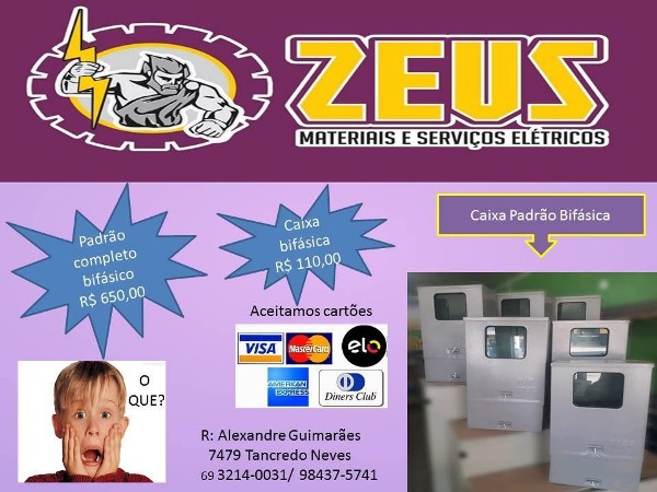 Telefone: (69) 3214-0031, (69) 98437-5741 (Whatsapp). Facebok Zeus Eletric