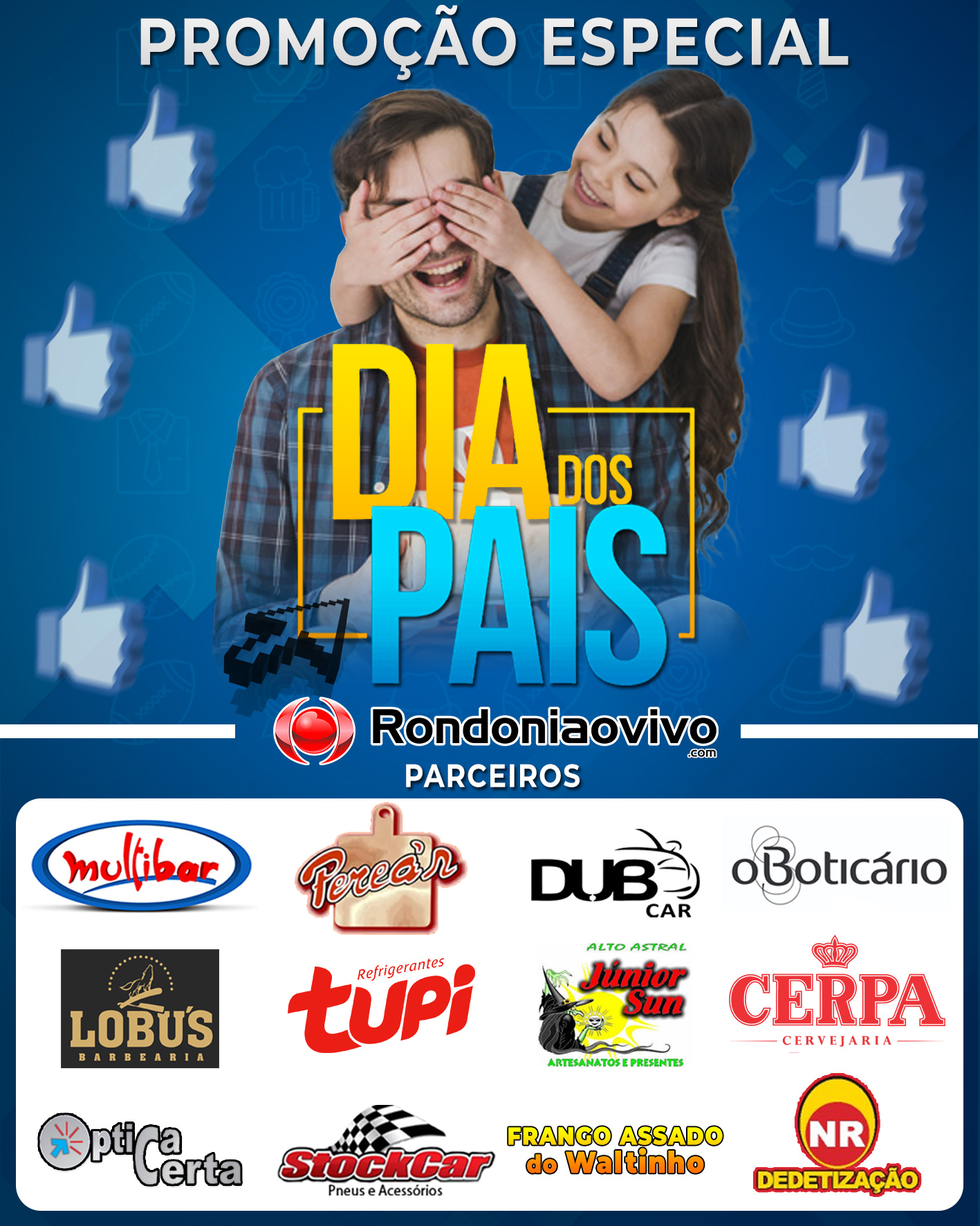 O Rondoniaovivo em parceria com a Multibar, Lf Distribuidora (Cerpa), Lobus Barbearia, O Boticário, Tupi Refrigerantes, Óptica Certa ,Perea’s Restaurante, Stock Car Acessórios, Dub Car, Junior Sun, NR Detetização e Frango Assado do Valtinho, realiza um festival sorteando 20 prêmios para tornar esse dia dos pais mais especial.