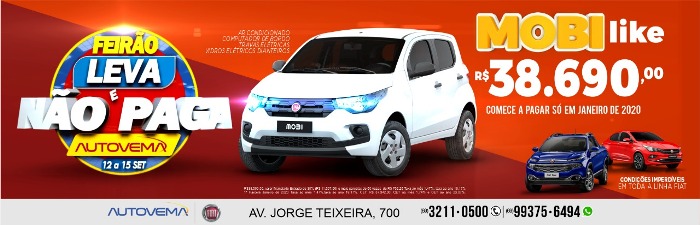 Feirão Leva e Não Paga Autovema - De 12 a 15 de Setembro, agora você sai de FIAT 0Km.