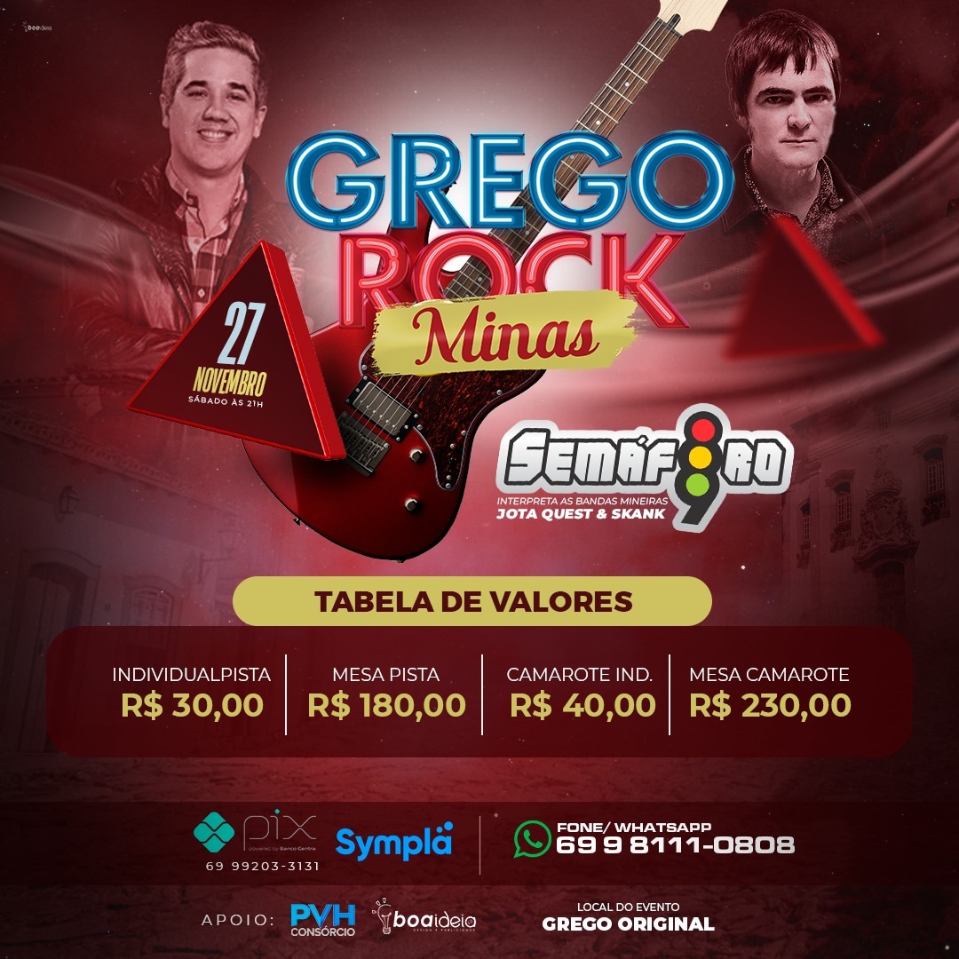 “Estamos produzindo essa noite com a banda Semáfaro 89, que sem dúvidas, é uma das maiores bandas da Capital, representada na voz do cantor portovelhense Daniel Duarte, que além de talentoso é muito carismático e tem uma presença de palco bem emblemática, é uma bela oportunidade para conhecer o Grego Pub, para curtir as músicas dessas duas bandas maravilhosas e que marcaram a geração e história de muita gente por aqui. Se programem e tragam os amigos para esse evento. Vai ser limitado e com reservas antecipadas a parti do início de novembro”, ressaltou Ronaldo Carriço, produtor de eventos.