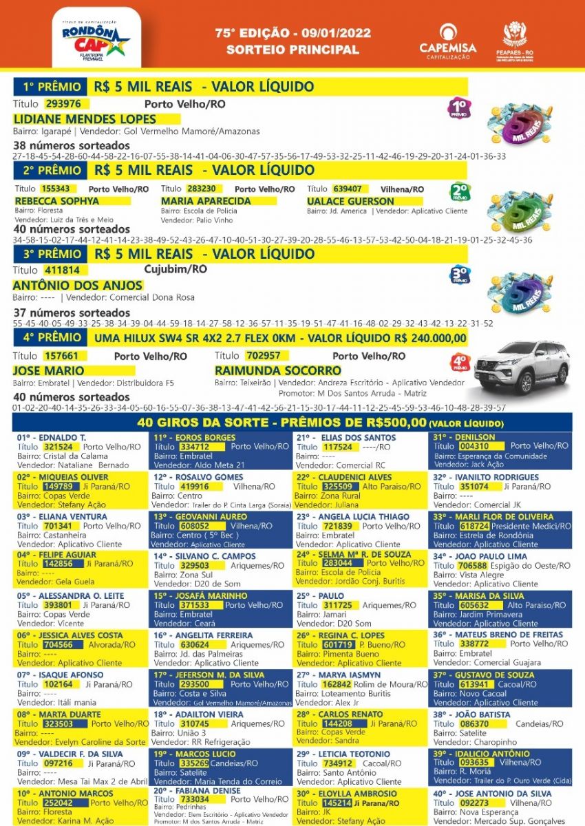 Quem ganha no Rondôncap todo mundo vê, conheça agora os ganhadores do último domingo: