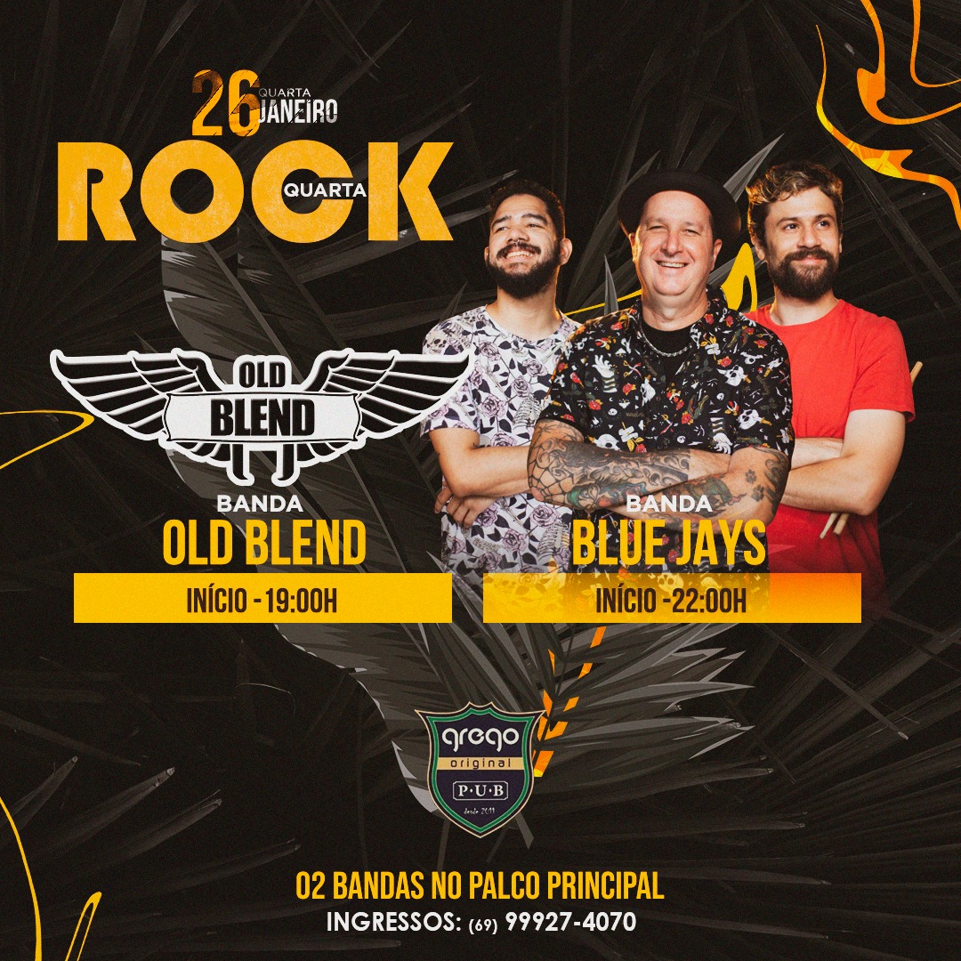 A casa abre às 5h e rock vai até 1h da madrugada. No palco principal, a partir das 19h, tem show da Old Blend, na sequência, às 22h, show da Blue Jays.