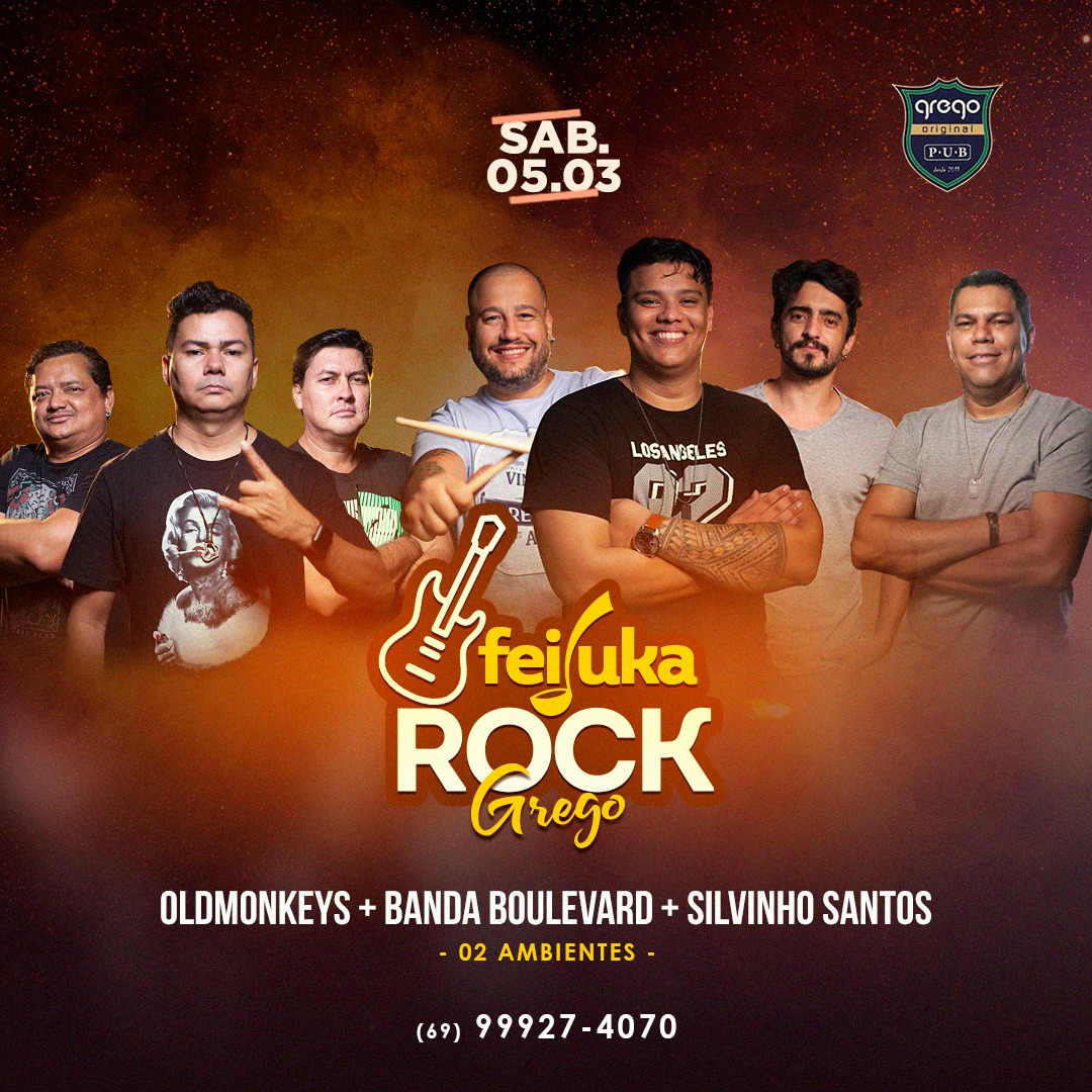 A empresária Luna Lorena, sócia administrativa do Grego, disse que o músico Silvinho Santos, e as bandas Oldmonkeys e Boulevard serão as atrações do evento gastronômico e tradicional "Feijoada com Rock".