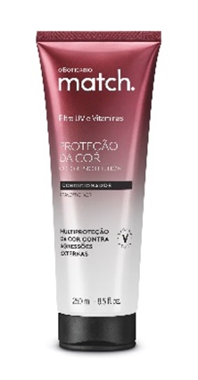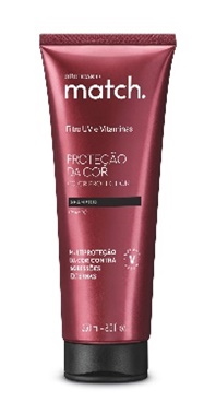 A linha Match Proteção da Cor tem ação de proteção contra a oxidação dos fios e agressões externas, além de auxílio na manutenção da cor por meio do filtro UV. Por ser enriquecida de vitaminas, que são essenciais para manter a fibra capilar nutrida e hidratada, evita o ressecamento e a quebra e devolve a maciez e o brilho aos fios tingidos. Sua fórmula inteligente tem ação antidesbotamento, que fixa a tintura no interior da fibra capilar enquanto hidrata profundamente os fios, garantindo cor prolongada por até 40 dias.