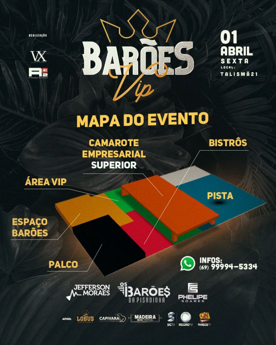 O Rondoniaovivo em parceria com a VX Entretenimento, R2 Entretenimento e Madeira Music, vai sortear 10 internautas para o evento "Barões Vip" previsto para ocorrer no dia 1 de abril, em Porto Velho (RO).