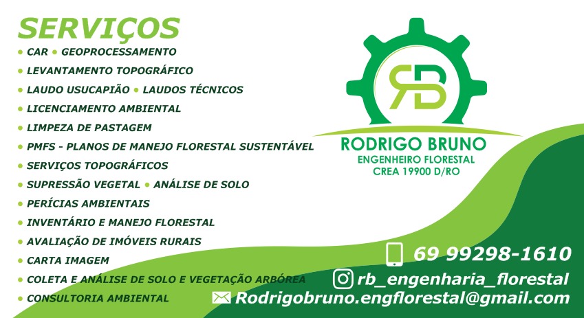Com a iniciativa de promover o manejo sustentável de florestas, a preservação e a exploração consciente. O Engenheiro Florestal, Rodrigo Bruno, investiu na carreira e criou a RB Engenharia Florestal, onde atualmente, oferece diversos serviços para Porto Velho (RO) e região.