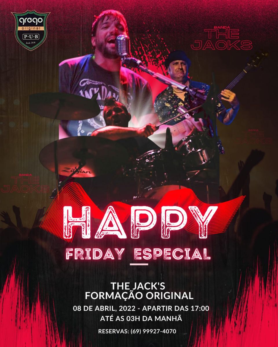 Além da The Jack's, as bandas Bypass e K7, serão as atrações desta Happy Friday, que começa a partir das 17h, com promoção de petiscos e chopp.