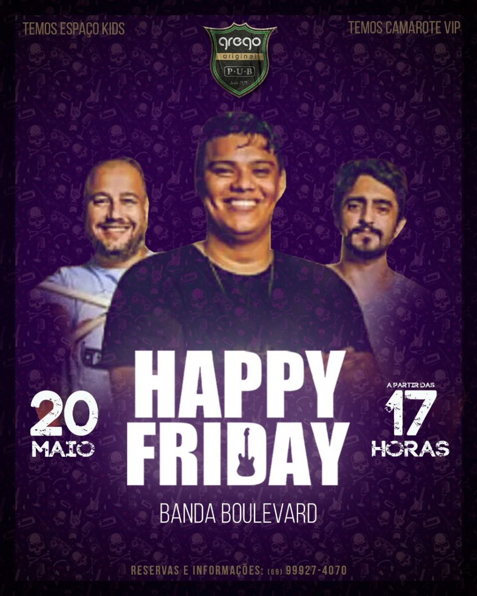 Todas as sextas, a partir das 17h, é dia do evento músical "Happy Friday", da premiada casa de rock, o Grego Original, com mais de 10 anos de tradição na capital rondoniense.