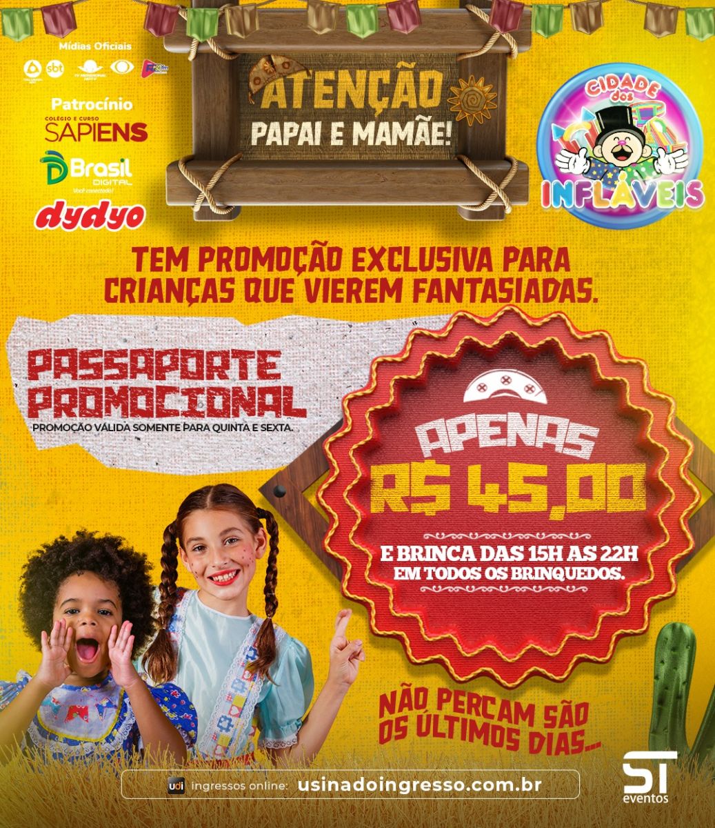 Atenção papai e mamãe “Passaporte Promocional” R$45,00 (nesta quinta e sexta feira) promoção exclusiva para as crianças que vierem fantasiadas.