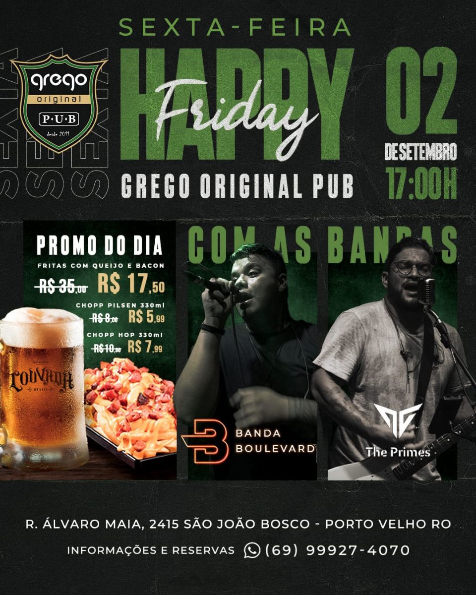 Confira as programações musicais e gastronômicas que vão acontecer nesta sexta-feira e sábado, dia 02 e 03, no premiado Pub, o Grego Original, com 10 anos de tradição na capital rondoniense.