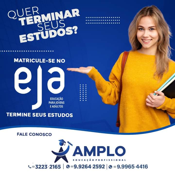 Pensando nisso a Amplo Educação profissional, tem o curso para você que pretende concluir os estudos. Através da EJA você consegue terminar os estudos em um curto prazo e ainda se qualificar para o mercado de trabalho. A metodologia é simples e prática. O aluno escolhe como quer estudar: na Escola ou em casa, podendo realizar as provas em sua própria residência.