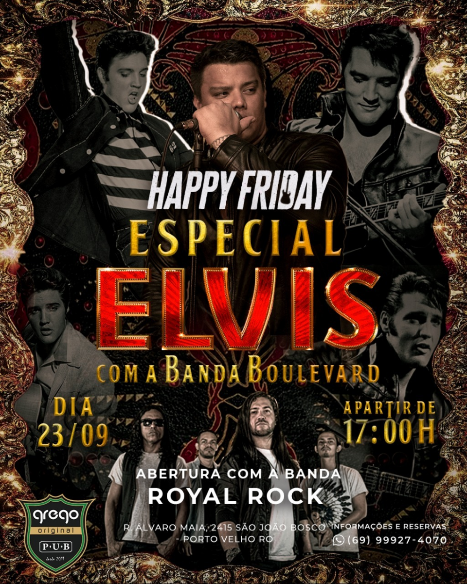 Rock feito com estilo é o que vai rolar nesta sexta-feira na edição do evento músical Happy Friday do Pub Grego Original, com a realização do especial Elvis Presley, interpretado pelos consagrados músicos da banda Boulevard.