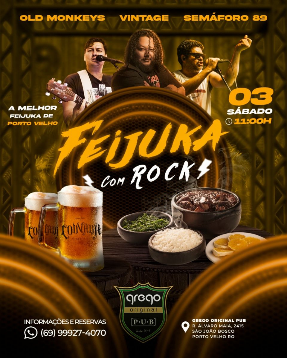 Com três atrações, sendo dois shows acontecendo também simultaneamente, da Old Monkeys , no palco lounge, e banda Vintage, no palco principal, na sequência, show da Semáforo 89, a tradicional Feijoada com Rock, acontece aos sábados, a partir das 11h.