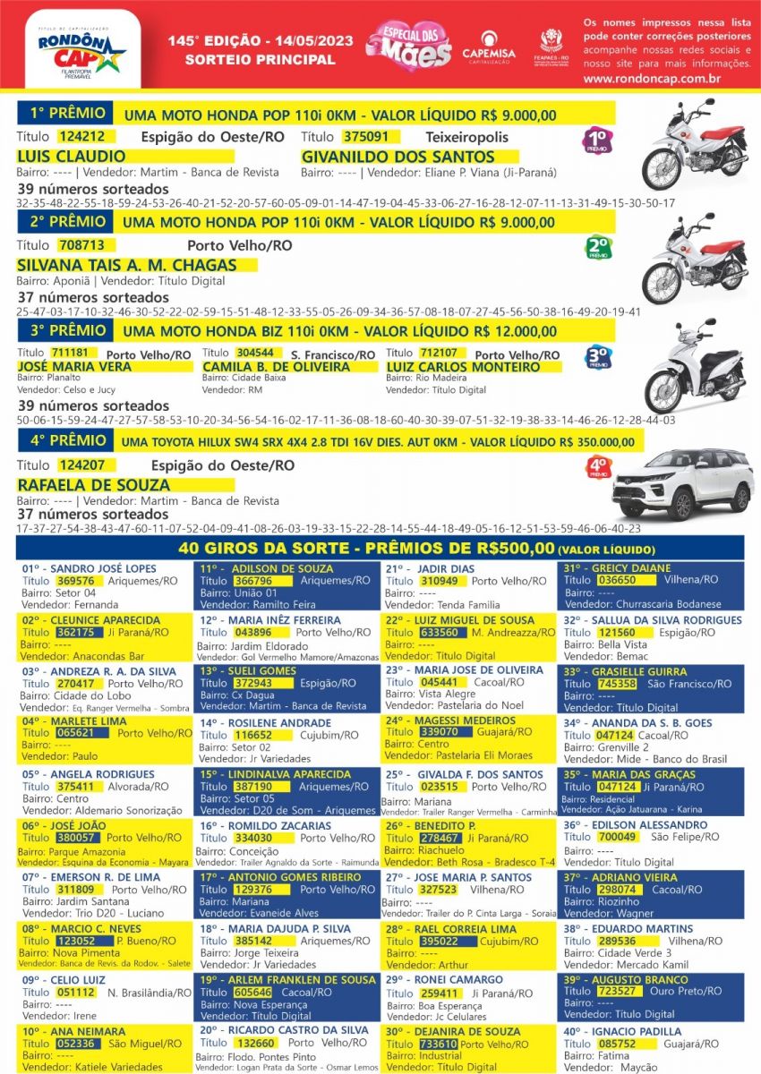 Quem ganha no Rondôncap todo mundo vê, vamos conhecer agora quem levou os prêmios principais do sorteio do trabalhador: