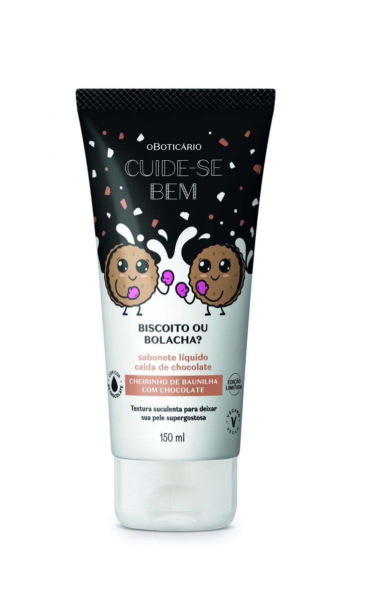 A Loção Hidratante, que já é um produto queridinho dos lovers de Cuide-se Bem, é um dos destaques da linha Cuide-se Bem Biscoito ou Bolacha? por manter a pele hidratada por 48 horas, deixando-a macia e perfumada, sem a sensação de pele grudenta, e está disponível em duas volumetrias, de 400 ml e 200 ml. Outra supernovidade é o Sabonete Líquido Corporal, com a cor e textura de calda de chocolate, que entrega um banho delicioso, remove as impurezas e o excesso de oleosidade sem ressecar a pele; enquanto o Body Splash deixa a pele com cheirinho de baunilha e chocolate por um tempo prolongado.