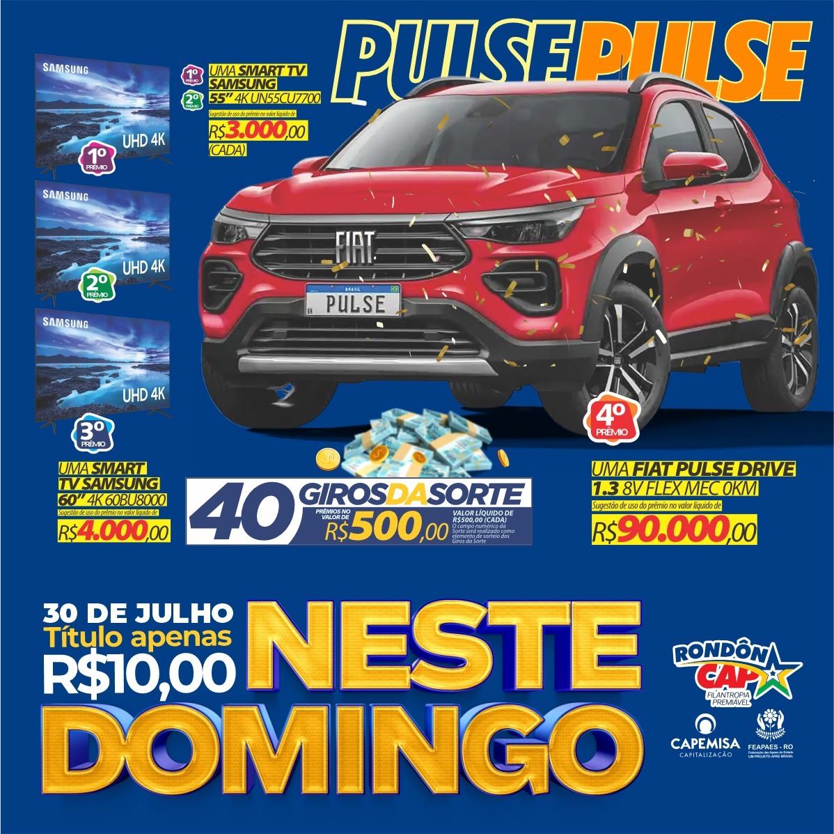 No quarto prêmio deste domingo tem um Fiat Pulse zero km no valor de 90.000 reais!