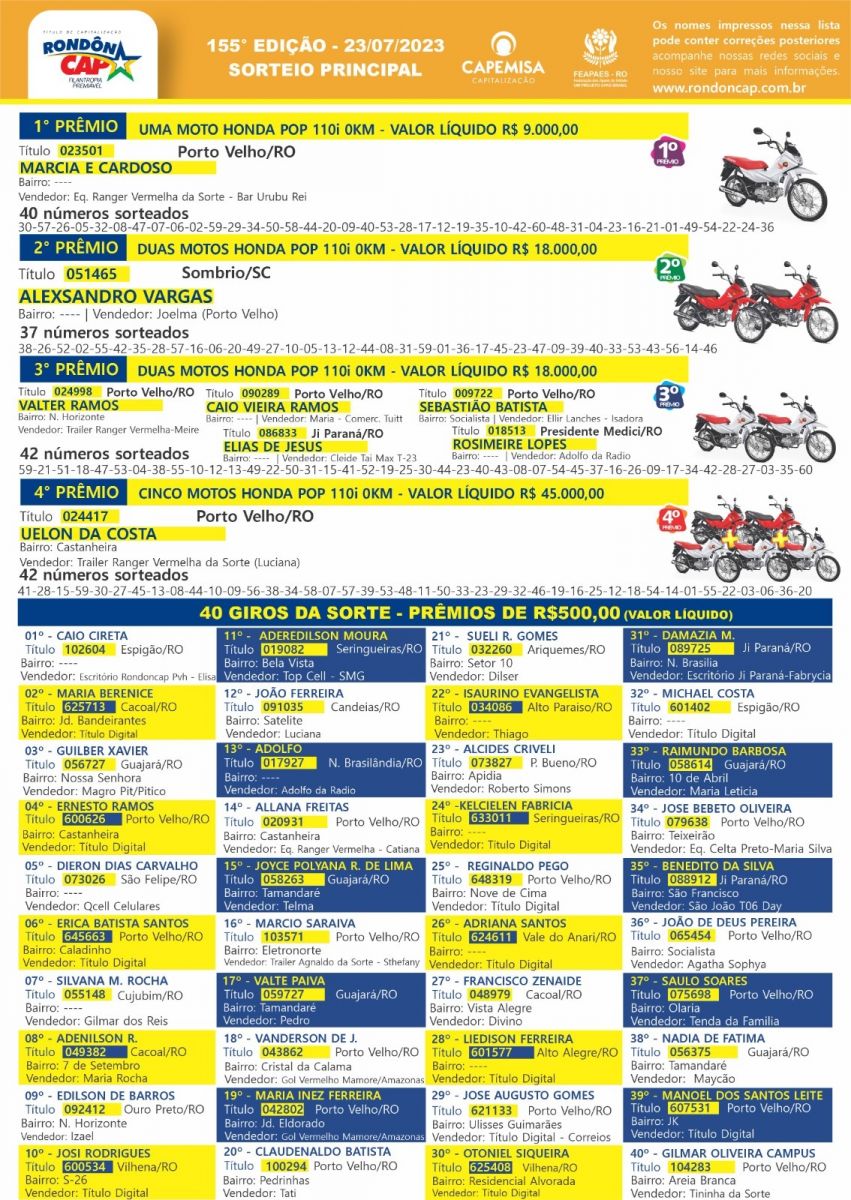 Quem ganha no Rondôncap todo mundo vê, vamos vê agora os melhores momentos do sorteio de Ontem.