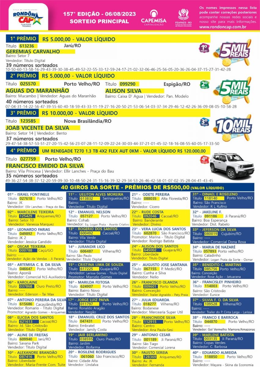 Quem ganha no Rondôncap todo mundo vê, veja agora os melhores momentos do primeiro sorteio de agosto: