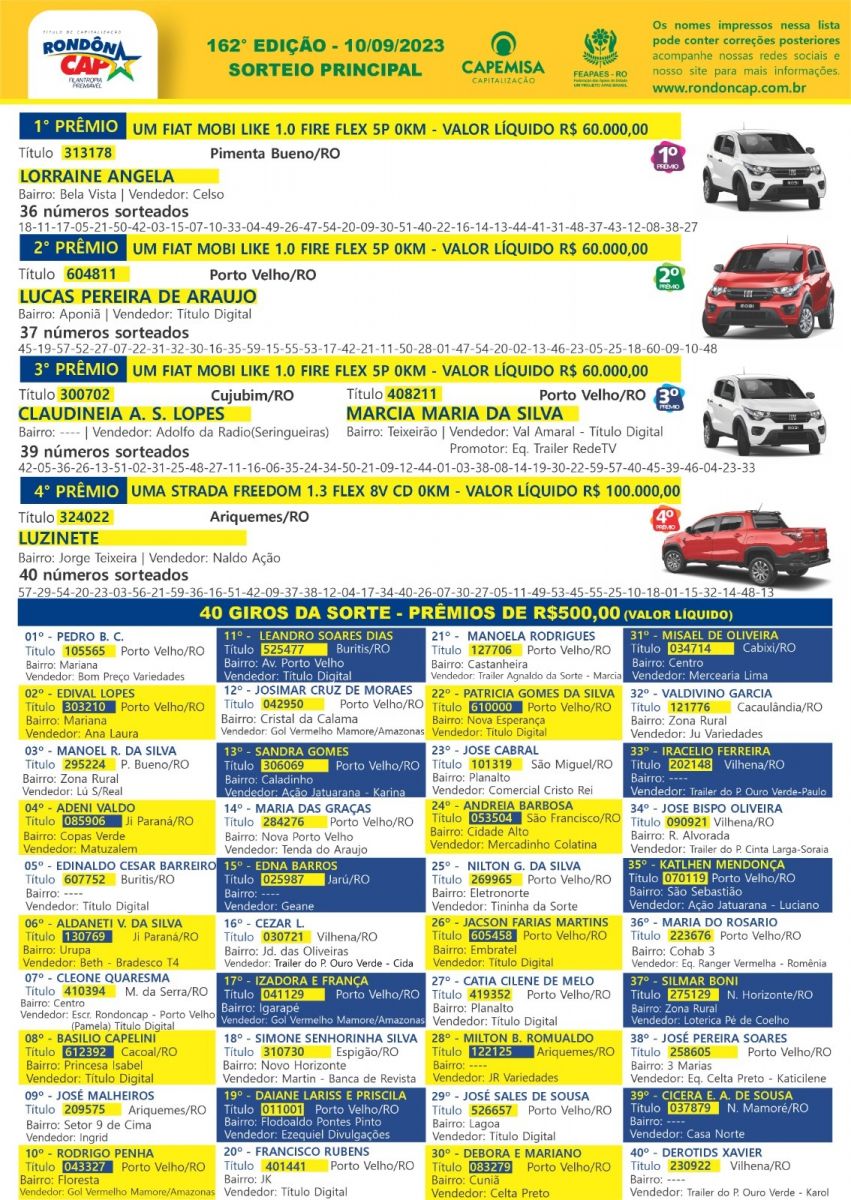 O Rondôncap quer ver você de carro zero km na garagem ainda em setembro, e neste domingo tem sorteio de 2 carros e o título só 10 reais!