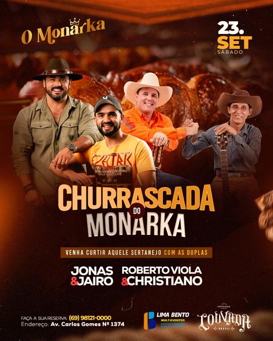 A "Churrascada Do Monarka" acontece todos os sábados, a partir das 11h, com o valor de R$ 50.00 o buffet livre por pessoa.