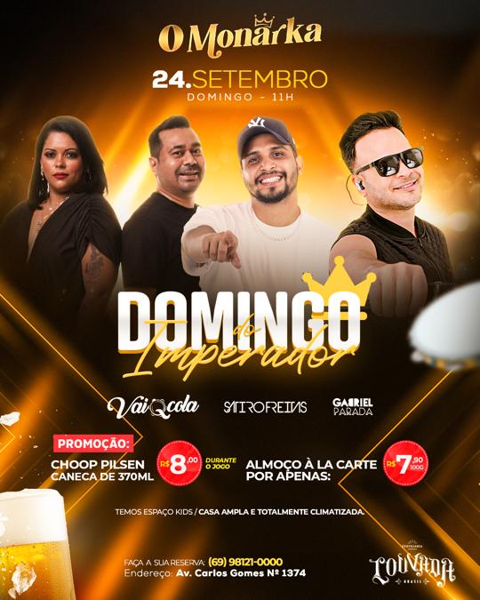 "O nosso domingo tem hora pra começar, às 11, com almoço a quilo, promoção de chopp Pilsen e transmissão do jogo decisivo entre Flamengo X São Paulo, e shows antes e após a decisão da final da Copa do Brasil", enfatizou o empresário Sinezio Tapajós, da casa que é o novo conceito de entretenimento, lazer e gastronomia da capital rondoniense, 'O Monarka'.