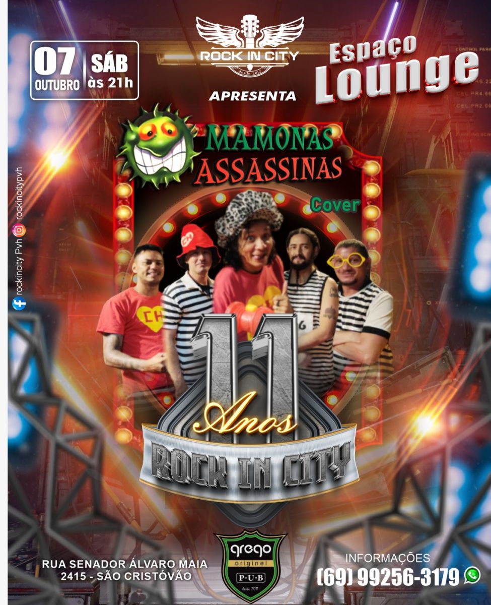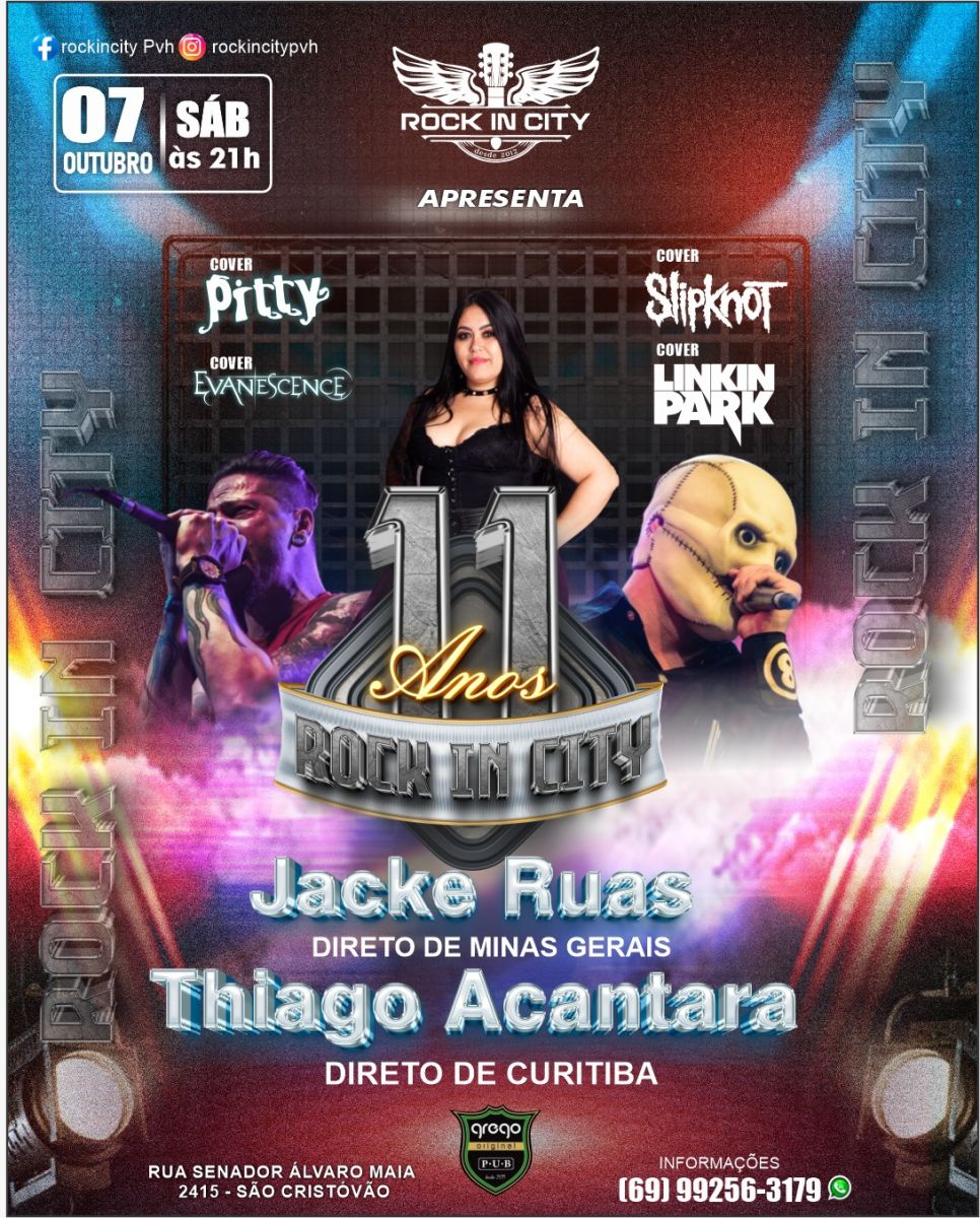 Edição especial 11 Anos Rock in City venha comemorar com Jacke Ruas direto de Minas Gerais fazendo o especial Pitty e Evanescence, Thiago Cantara direto de Curitiba vai fazer o chão tremer com especial Linkin Park e Slipknot. Uma noite épica com o melhor do Rock nacional e internacional. Atrações Extra: Cover Mamonas Assassinas + Especial Engenheiros do Hawaii.
