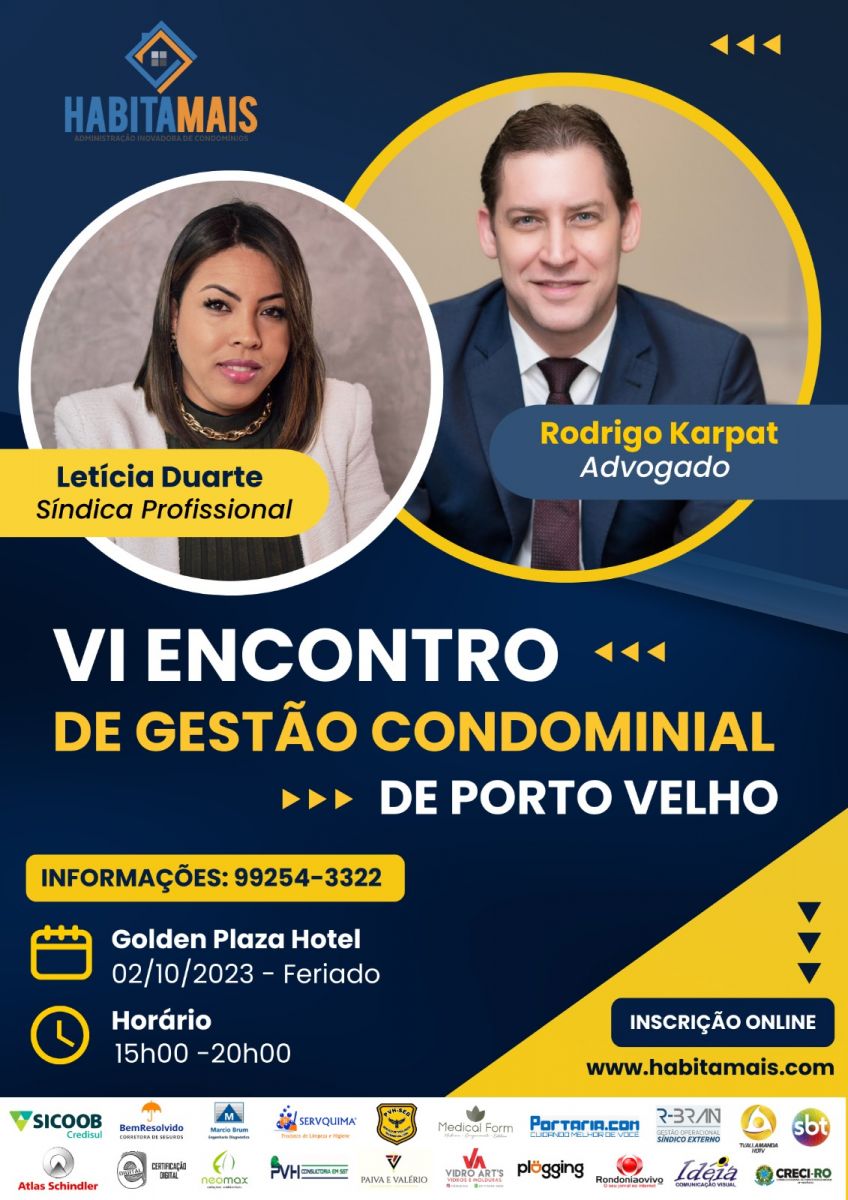 Terminam no próximo sábado, 30, as inscrições do VI Encontro de Gestão Condominial de Porto Velho. A inscrição é gratuita e os interessados podem se inscrever pelo link (