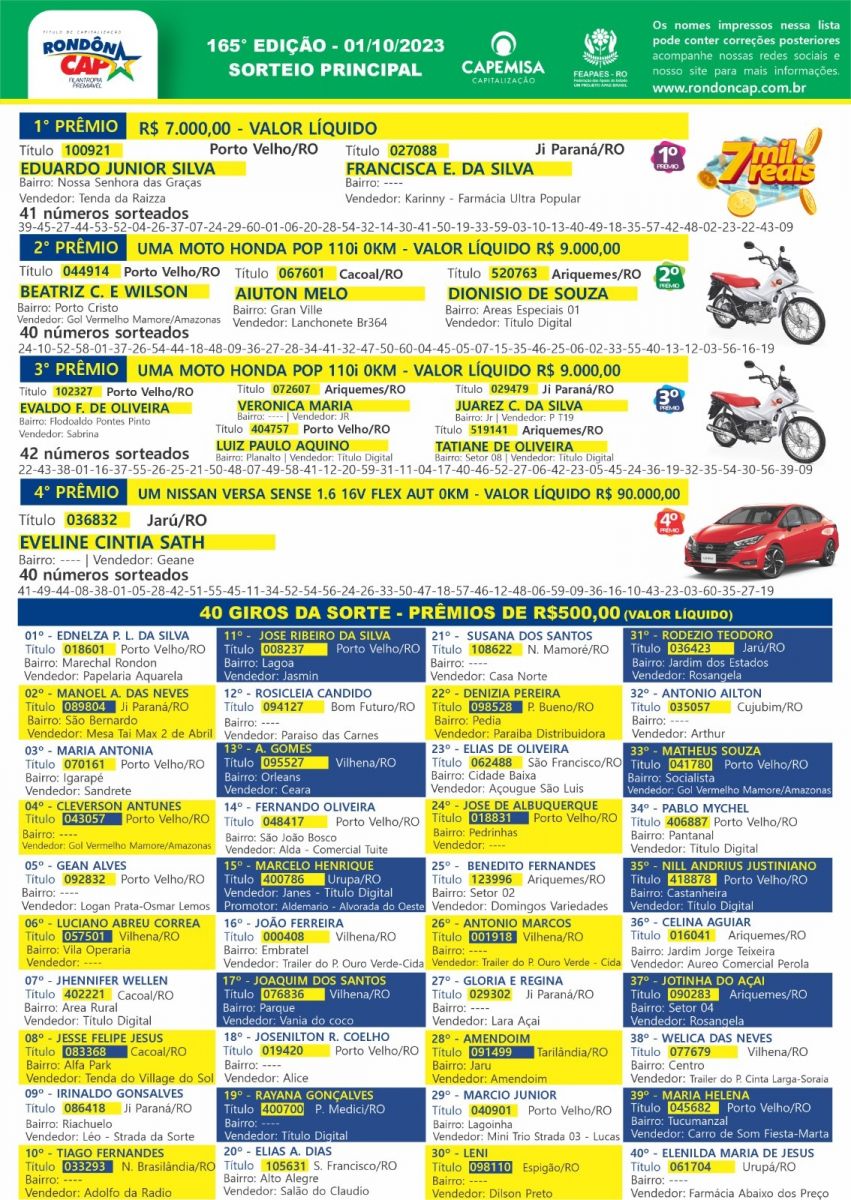 Quem ganha no Rondôncap todo mundo vê, vamos Ver agora os melhores momentos do primeiro sorteio de outubro:
