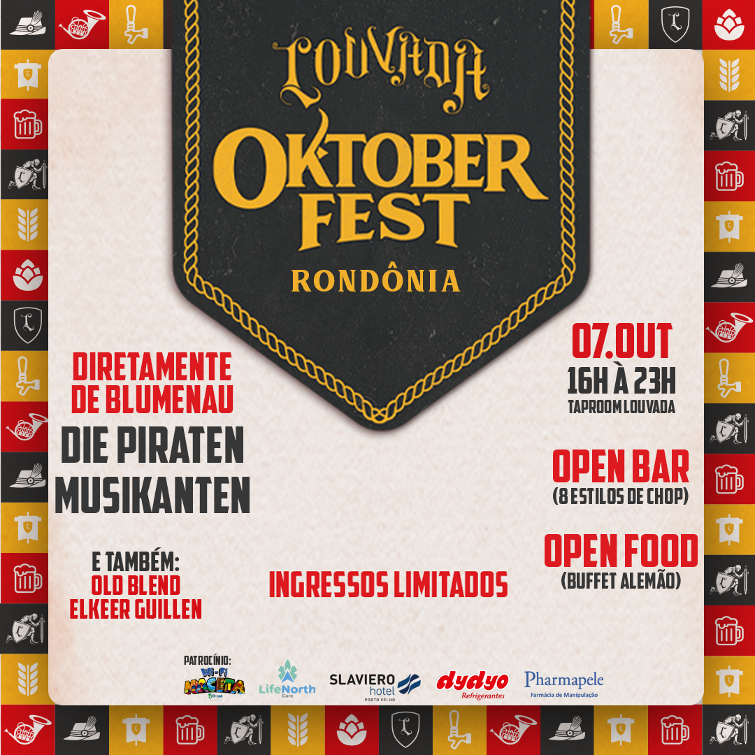 O evento, que será realizado no dia 7 de outubro, no Taproom da Louvada na Av. Prefeito Chiquilito Erse, 2890 em Porto Velho, das 16h às 23h, já está consagrado como a maior Oktoberfest de Rondônia.