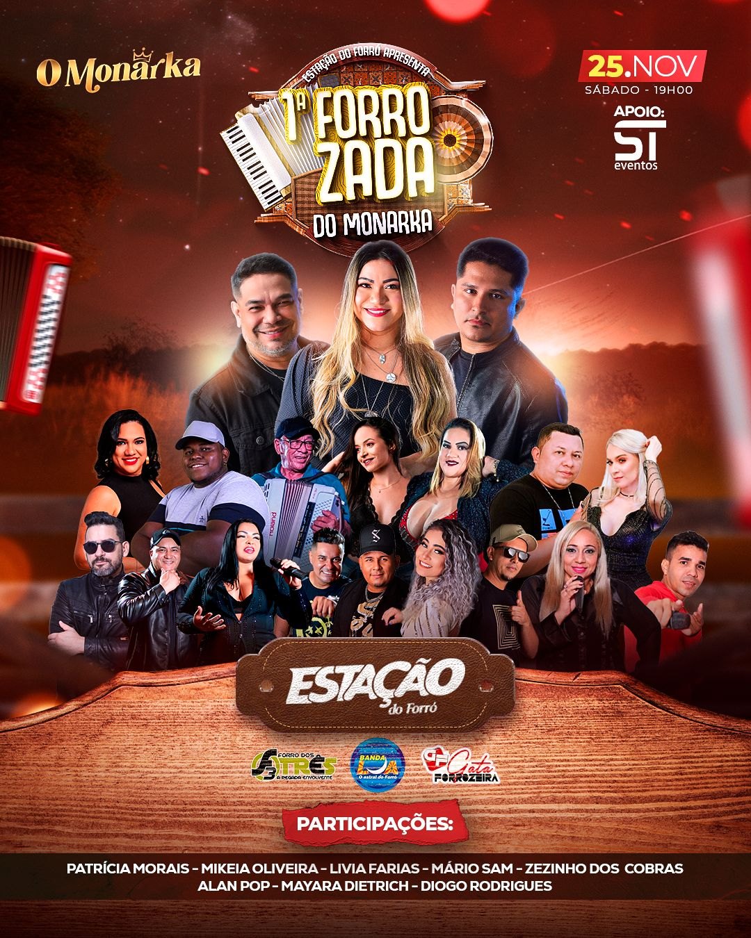 Os shows com as bandas: Forró dos Três, Banda Lua, Gata Forrozeira e Estação do Forró e partições de Patrícia Morais, Mikeia Oliveira, Lívia Faria, Mário Sam, Zezinho dos Cobras, Alan Pop, Mayara Detrich e Diogo Rodrigues, vai começar às 19h.